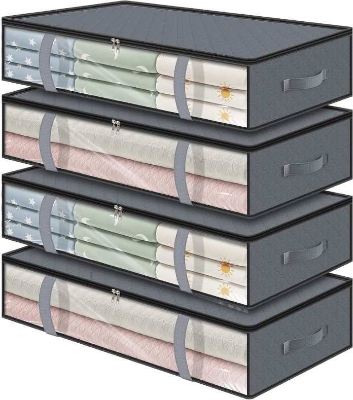 We like how this set‌ tackles under-bed clutter‍ with a smart mix ⁤of capacity, visibility, and handling. Each low-profile unit offers 90L of room⁣ at 39.4 × 19.7⁢ × 7.1 inches, while a wide clear front ​window ‌lets us confirm contents instantly.The dual smooth zippers open and close without snagging, and the​ triple-layered, thickened ‌non-woven fabric ⁢ feels sturdy yet ⁣breathable and odorless. Four reinforced handles-two‌ up front ‌for lifting and two on ​the sides for pulling-make sliding in and out of tight spaces⁢ straightforward, and⁢ the whole organizer collapses flat ⁢ when ⁢it’s off-duty.